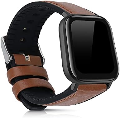 kwmobile Strap Compatible with Huami Amazfit GTS/GTS 2 Strap - Silicone and Leather Sport Wristband - Brown/Black