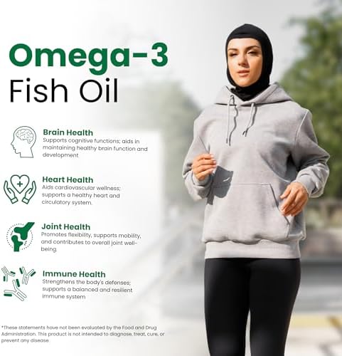 - DÓSIS DIARIA POTENTE: Nuestro suplemento de aceite de pescado Omega-3 Halal contiene 1200mg de aceite de pescado y 300mg de Omega-3 por cápsula blanda, proporcionando una dosis diaria potente que puede apoyar tu bienestar.