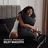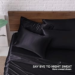 MR&HM Satin Bed Sheets, Queen Size Sheets Set, 6 Pcs Silky Bedding Set with 15 Inches Deep Pocket for Mattress (Queen, Black)