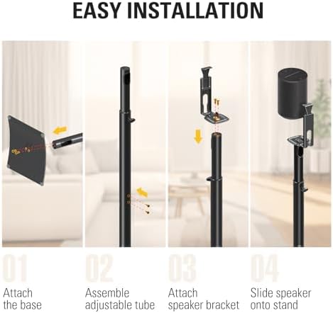 Mounting Dream Speaker Stands for Sonos Era 100, One, One SL, Play:1, Height Adjustable Up to 42", Set of 2 Surround Sound Speaker Stand with Cable Management, 13.2 LBS Loading MD5412