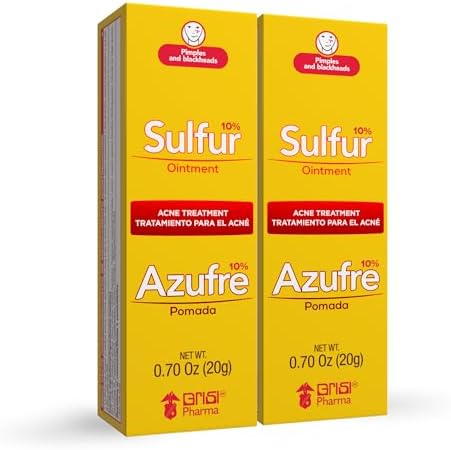 Biosulfur Grisi Acne Treatment: Fights Pimples, Blackheads, Blemishes, Improves Damaged Skin from Acne Scars, Prevents Breakouts, Keeps Pores Clear, Controls Oil, Sulfur Ointment, 0.70 Ounce, 2-Pack