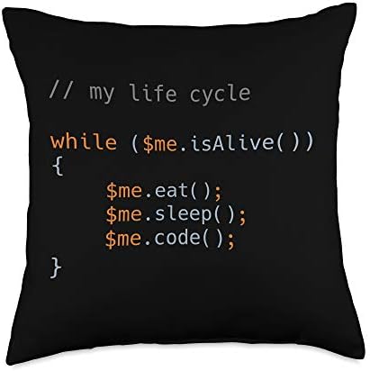 My Life Cycle Code Funny Programming Coding IT Gift Black Throw Pillow
