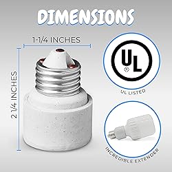 HIGH-QUALITY MATERIAL: Quality is our top priority! These lamp socket converters are made from a high-quality material which offers high resistance heat and other alkalis. These sockets have great durability and do not lose their originality even on its exposure to various external factors. INCREDIBLE EXTENDER: Do you feel the height of the bulb is very low in your light fixture? Then this extender will help you to lift the height of your bulb up to 1-1/4 inch, Proving you an overall height of 2-¼. These extenders will allow you to fix your bulb height according to your convenience. MEDIUM BASE: This porcelain socket extender has a medium base which is very helpful for converting your bulb height without customising the base socket, as most of the bulbs have a medium base in common. Our Porcelain material extenders are sturdy and highly known for their durability. EASY TO INSTALL: Installing these lamp socket converters are very simple! You can simply screw the extender to your light socket and tighten it to your convenience. You can easily install these extenders to your light fixtures by yourself without any complex tools or costly technicians. WIDE USAGE: The usage of these lamp converse are very vast! Using these adapters you can easily change the size and height of your base lights to your convenience. If you feel the brightness of the light is dull you can simplify the base or height of the bulb from your light fixtures without changing the whole lamp set.