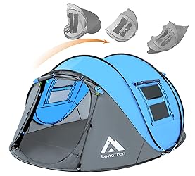 Nylon Imported 【Easy Setup】Instant pop-up tent with pre-assembled poles sets up in seconds, simply open the bag and let go,So easy and enjoyable and set up the tent. No need to waste nice camping time to set up tents,Even if it rains suddenly, you don’t have to be flustered. 【Enjoy the Breeze】Mesh front & back doors provide enough air flow So that you can enjoy the breeze.closed with just the screen material, or sealed with the nylon door for total privacy,which is so convenient that you do not have to go outside to close the windows when raining. 【4 Person Pop Up Tent】Spacious Interior: 9.2 x 6.6 feet floor; The pop-up tent fits for 3-4 people in sleeping bag or 2-3 people with lots of camping gears; Center Height: 4.3 feet. INCLUDES 8 x Tent Pegs for keeping tent steady, 4 x 3mm Wind Ropes. 【Tent with Vestibule】Family camping tent waterproof and tearproof,made of 190T Polyester Fabric, groundsheet fabric is 110G PE Gray.You can leave muddy shoes and outer clothing in the vestibule and needn’t bring dirt into main tent. 【Enjoy the Leisure Tent】This pop up tents suitable for Casual camping, Backyard Resting, festivals, outdoor recreational activities, boy/ girl scout, backpacking ,and beach gatherings.torage pockets and lantern hook keep items neat and organized.