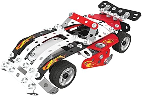 ¡Construye, corre y transforma con el Set de Vehículos de Carreras 10 en 1 de Meccano! Ideal para el constructor novato, este set de construcción STEM tiene todo lo que necesitas para ensamblar y desensamblar 10 autos, aviones, barcos y más de alto rendimiento (uno a la vez). Con 225 piezas, dos herramientas reales y una guía de instrucciones fácil de seguir (para tres vehículos), construye un auto de carreras, un avión de combate y un barco de carreras, ¡o usa tu imaginación para crear tu propio vehículo! Personaliza tus autos y vehículos con dos hojas de pegatinas y elige entre diseños de llamas o modernos. ¡Después de completar un modelo, expóstalo, corre con él o desmóntalo y construye algo nuevo! Mientras construyes tus vehículos de carreras, desarrollarás una comprensión de la ciencia, la tecnología, la ingeniería y las matemáticas, mientras fortaleces la coordinación ojo-mano, la resolución de problemas y las habilidades motoras finas. Los sets de construcción de juguetes Meccano y los juguetes educativos son los regalos perfectos para niños. Para más formas de crear con tu Set de Vehículos de Carreras 10 en 1, hay instrucciones adicionales de construcción disponibles en Meccano.com. ¡Construye y reconstruye como nunca antes con el Set de Vehículos de Carreras 10 en 1 de Meccano!