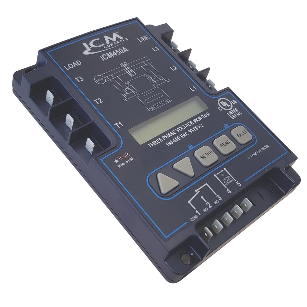 For more than two decades, ICM has been an innovator and a recognized leader in the manufacturer of line voltage controls designed to protect your most valuable equipment. The ICM450A and ICM450A PLUS+ are the latest 3-phase offerings, providing superior motor protection from premature failure and damage caused by common voltage faults such as phase unbalance, over/under voltage, phase loss and phase reversal. A design upgrade from our flagship ICM450, these newest models feature an easy to read, backlit display that makes quick work of adjusting the variable settings to better tailor the unit to the application. Common ¼” spade terminations eliminate the potential for exposed wires and allow for a better and safer connection. Both models also include menu options for English and Spanish readouts. Additionally, the ICM450A PLUS+ offers a real time clock for date and time stamp of fault events when they occur along with a Modbus RS485 communications port for communicating with a standard building management system.
