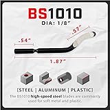 11 BLADES & SWIVEL HEAD - Includes 1 pre-installed blade and 10 extra BS1010 replacement blades for extended use. The swivel head smoothly removes burrs from uneven surfaces, ensuring precision for various applications HSS BLADES FOR DURABILITY - Made from tempered high-speed steel for superior sharpness and wear resistance. HSS lasts 80% longer than standard steel, delivering a smooth deburring process and extended tool life TWO PRECISION COUNTERSINK REAMERS - Includes two different sized 90° HRC62-64 angled reamers for precise countersinking & enlarging circular openings in wood, plastic, & metal, ideal for professionals, machinists, & DIYers needing accurate hole finishing. ERGONOMIC & BUILT TO LAST - Designed with a knurled aluminum handle for a secure grip and precise control. Comes with a protective case to store extra blades. Quality machining ensures durability, making it a reliable tool for professionals and DIYers alike. MULTI-MATERIAL COMPATIBILITY - Designed for deburring metal, plastic, and resin-based materials. Easily smooths edges on pipes, gears, and freshly cut metal. Ideal for plumbers, machinists, and hobbyists working on a variety of materials.
