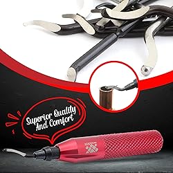 SET OF 11 HEAVY-DUTY S-BLADES: Our deburring tool features a swivel head to conform to uneven shapes. BK3010 blades are ideal for smaller holes up to 1.5mm in diameter. Includes an extra 10-pack of razor-sharp high-speed steel HRC64 BK3010 replacement blades. MULTI MATERIAL APPLICATION: Works great for cleanup of brass, steel, aluminum, copper or PVC pipes, as well as metal edges of auto parts, gears, or any other freshly cut metal parts. Also great for trimming the edges of your 3D printed plastic objects or parts. Our deburring tool is the perfect plumbing tool for professional plumbers. Whether you are an industrial professional, machinist, or a DIYer, our deburring tool works for you! HIGHLY DURABLE HSS STEEL DEBURRING BLADES: The blades are made of tempered high-speed steel that makes them sharp, strong, and resistant to wear. HSS steel is usually 80% longer lasting then regular steel, and that’s why we use it, because we care about our performance! SUPERIOR QUALITY AND COMFORT: Equipped with an ergonomic aluminum handle for secure grip, quality machined parts and a secure case for our extra blades, we know our tool is built to last. WARRANTY INFORMATION: All our deburring tools are covered by a 1-year warranty. If you experience any issues outside of usual blade wear, we will replace your tool for free. For any other questions or concerns, please contact us.