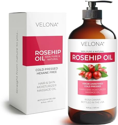 velona Rosehip Oil - 16 Fl Oz in Glass Bottle | 100% Pure and Natural Carrier Oil| Unrefined, Cold Pressed, Hexane Free | Moisturizing Face, Hair, Body, Skin Care, Stretch Marks, Scars…