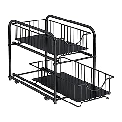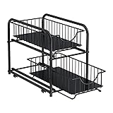 AIYAKA Pull-out Cabinet Organizer, Stackable 2-tier Under Sink Rack, with Sliding Storage Drawer for Pantry, and Desktop, for Bathroom, Kitchen, Office, Black