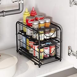 ✅【LARGE CAPACITY】Stackable Sliding Basket Organizer adopts a mesh basket storage design, which can store seasoning bottles, cans, cups, food, beverages, toiletries and some small accessories, etc. It is very suitable for kitchens, cabinets, living rooms, bathrooms, offices, etc. ✅【STACKABLE DESIGN】Sliding basket for easy access in limited space and stackable design (Buy two sets and stack them together) ✅【SLIDING DESIGN】The upper and lower net baskets can slide freely along the track, which is convenient for storing and taking out items, and easily saves your cabinet space ✅【ADJUSTABLE DESIGN】the under sink rack has 4 holes, you can adjust the height according to your needs. There is a plastic plate on the basket to prevent some small accessories from falling ✅【STABILITY CONSTRUCTION】Package include assembly tools and easy to assemble. Rugged metal round tube structure, scratch-resistant coating;PET anti slip pad can be placed on its sliding or scraping surface