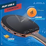 JOOLA - AN OLYMPIC TABLE TENNIS BRAND TRUSTED FOR 60+ YEARS: Launched in the 1950s, JOOLA has been the proud sponsor of the biggest tournaments in the world, including the Olympics, World Championships, and US Open; Equipment designed for all levels ITTF REGULATION SIZE: The JOOLA Infinity Overdrive ping pong racket comes with a smooth inverted surface and comfortable ergonomic flared grip handle for enhanced performance, speed, and spin; Table tennis equipment for kids and adults PLAY LIKE A CHAMPION: 2 layers of carbon Kevlar reinforce the wood and reduce vibrations while enlarging the 'sweet spot' for stronger attacks; Includes all the elements of a professional ping pong racquet, including PVC side tape to protect the edges SUPERIOR QUALITY AND DURABILITY 7 PLY: Only the best materials are combined together, Hinoki, Koto, Ayous, and two layers of Carbon Kevlar to create the perfect combo for increased speed and greater spin. Great for the family game room. PERFORMANCE RATINGS (SCALE 1-10) - Speed: 9, Spin: 9, Control: 6. Includes JOOLA Micron 48 Table Tennis Rubber on both sides. Does not come with ping pong balls. Great gift for someone who already owns an indoor or outdoor JOOLA ping pong table.
