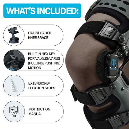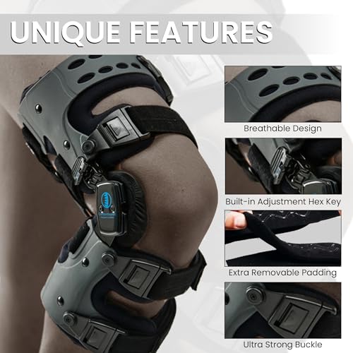 - Adjust Valgus / Varus Support on the Go: The upgraded single sided oa unloader knee brace uniquely designed with a built in hex key for Valgus/Varus adjustment correction. Thus less tools are needed and can be adjusted anywhere for unloading knee pressure limiting the knee joint's side movement, ensuring it stays aligned for more comfortable and pain-free mobility. This OA knee brace is a heavy duty knee brace.