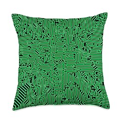 Computer Circuit Board Geek Tech Gamer Data IT Pattern Green Throw Pillow