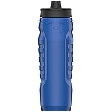 - The Under Armour Sideline Squeeze Water Bottle is made for sports activities or everyday use. This sports squeeze water bottle holds 32 ounces, making it handy as a football water bottle, baseball water bottle, soccer water bottle, or hockey water bottle. Designed with a quick-shot lid and one-way valve, this squeeze water bottles sports solution helps you stay hydrated on-the-go. This football water bottle for boys and girls offers one-hand operation for those times when you need to hydrate without having both hands free. Its practical design includes marked measurements in ounces and milliliters, allowing you to track your water intake. The Under Armour Sideline Squeeze Water Bottle is also dishwasher safe (top rack only) and features a self-draining cap to prevent puddles. Crafted from BPA and lead-free materials. Whether you're at the gym, on the field, or just out and about, this 32 oz squeeze bottle meets your hydration needs with ease. Stay refreshed during soccer practice, a baseball game, or a hockey match with this essential water bottle sports gear.