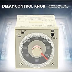- Features:1. High quality plastic case, and dustproof.2. 1.2 seconds to 300 hours timing range.3. High accuracy, large capacity.4. Stable performance, long service life.5. Widely applied to automated control circuit such as remote control, communication, automatic control, mechatronics and so on.Specification:Model: H3CR-A8Rated voltage: 100-240VAC 100-125VDCRated current: 5AOutput: 2NC (double delay)Time range: 1.2 seconds to 300 hours (adjustable)Contact load: Medium powerContact switching current: 5AContact switching voltage: 220VContact form: Two open and two closedCoil power supply: 220vCoil power: 3WPull-in current: 5ARelease current: 1ASize: 47 x 47 x 85mm / 1.85 x 1.85 x 3.34inPackage weight: Approx. 114g/4.0ozPackage list:1 x Delay Timer Relay