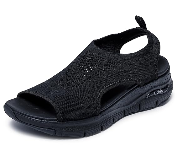 Lightweight engineered knit mesh fabric upper Slip on bungee laced sporty casual comfort trail walking hybrid sandal sneaker design Unique open side design for cooling comfort Cooling lightweight mesh panels at toe, sides and heel Air Cooled Memory Foam cushioned comfort insole