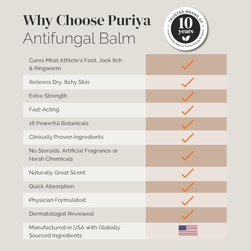 Puriya Clinically Proven Antifungal Cream for Skin Fungus, Extra-Strength Athletes Foot Cream Treatment, Jock Itch, Ringworm Treatment for Humans, Anti Fungal Itchy Skin Relief with Tea Tree Oil