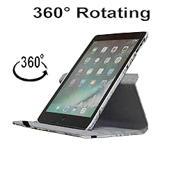 - 360° Rotation Rotary Swivel allows 360 degrees rotation to Make it easy to transition between landscape and portrait modes while keeping your tablet in the case. Smart case Automatically wake up iPad 5th or 6th generation on open and Sleep on close with magnetic. Premium feeling Made of high quality Polyurethane(PU) leather with soft micro fiber interior lining. Built in Stand Convenient Stand Positions for easy typing, reading and viewing.Built with Pen Holder Conveniently secure sylus or pencil.Special Design Built in cut out and holes for Full accesses to all features and ports. Fit Models and Part numbers: 2017 iPad 9.7 /iPad 5th Generation A1822, A1823 2018 iPad 9.7 /iPad 6th Generation A1893, A1954 Package Lists: I x case for iPad 5th or 6th Generation (iPad not included) 1 x Stylus 1 x film 1 x Cleaning Cloth Note: Only fit selected models. This case does not fit other iPad models.