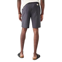 All Day Shorts version 2.0, an improved iteration based on user feedback, featuring updated fabric for increased movement and breathability, making them the best shorts for men. Crafted in premium eco-friendly fabric primarily made from recycled plastic bottles with a touch of cotton, these men's shorts offer a soft, natural feel and quick-drying technical performance. With a 7" inseam, a relaxed fit, and a straight leg that sits below the natural waist, these shorts for men are tailored for all-day functionality and comfort. Details include an interior drawstring, zip fly with shank closure, rubber shank at the center front, side slash pockets, back zip pocket at wearer's right, and an open back welt pocket at wearer's left, making these men's casual shorts both stylish and practical. 75% Recycled Polyester, 17% Cotton, 8% Elastane. Model is 6’2 wearing size 32".