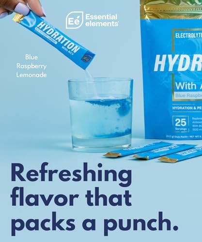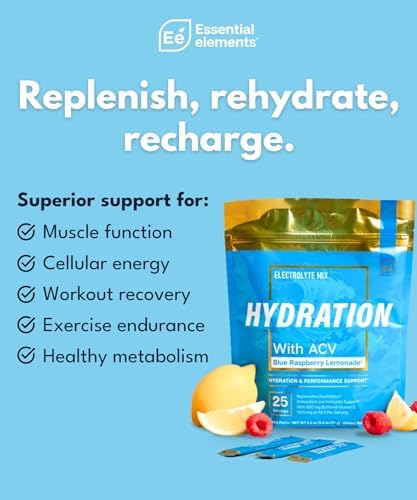 Essential Elements Hydration Packets - Blue Raspberry Pack - Sugar Free Electrolytes Powder Packets - 25 Stick Packs of Electrolytes Powder No Sugar - Hydration Drink - with ACV & Vitamin C