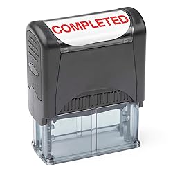 CLEAR AND PERMANENT IMPRESSIONS This self-inking rubber COMPLETED stamp comes with preinstalled red ink. You can refill the ink and use it for thousands of impressions. IMPRESSION AREA: 14 x 38 mm (9/16" x 1-1/2") INK COLOR: RED CASE COLOR: BLACK COMPACT AND CONVENIENT DESIGN This self-inking rubber stamp is one of the most useful office supplies for your business. You can choose among variations according to your needs. You can customize your rubber stamp among variations: APPROVED stamp, CANCELLED stamp, COMPLETED stamp, CONFIDENTIAL stamp, COPY stamp, ENTERED stamp, FOR DEPOSIT ONLY stamp, PAID stamp, SCANNED stamp, RECEIVED stamp. Perfect office gift idea for your friends and family. LONG LASTING USE This self inking rubber stamp will ensure great impression quality with preinstalled ink. You can start using it just after you got the stamp. You don't need any preparation. It is already pre-inked with red dye. The bright red color is noticeable even on colorful papers and documents. This self inking rubber stamp can be used in the office, school, or at home. Great solution for document management with custom phrases. GREAT IMPRESSION QUALITY AND VISIBILITY This self inking stamp is designed for comfortable and long-lasting use. It has great plastic quality and a handy design. It is ready to use with pre installed red ink. After you finish stamping, the stamp case will shutter itself and protect your rubber and ink from dust. This open and close feature will allow perfect impressions even after many cycles of use. Impressions will not fade even after thousands of use thanks to vibrant dye ink. REFILLABLE INK PAD - OFFICE GIFT IDEA This is a durable and long lasting self inking rubber stamp. With just one ink pad, you can have more than 10.000 impressions of the same quality. You can easily take out the ink pad and refill it with stamp ink. You easily adjust your impressions thanks to the perfect grip handy design. This handy perfect size design allows your repetitive and fast stamping. Ink pads are replaceable if you want to change the impression color.