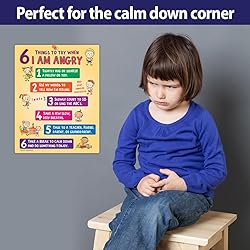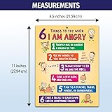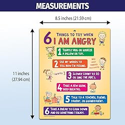 - Help kids manage their anger in healthy and constructive ways with the “6 Things to Try When I'm Angry” laminated magnetic chart. When children experience intense emotions, they may struggle to express themselves safely, which can pose a risk to themselves and others. This visual support tool teaches simple, calming strategies to help kids cool down, regain control, and communicate more effectively. The chart lists six easy-to-follow techniques: hugging a pillow or toy, taking slow deep breaths, counting to 10 or saying the alphabet, using words to express feelings, talking to a trusted adult, and taking a break to do something enjoyable. Brightly colored and easy to read, the card is perfect for young children learning emotional regulation. It’s ideal for use at home, in classrooms, daycare centers, counseling spaces, or school nurse offices. The sturdy 8.5" x 11" laminated card features four magnets on the back and a pre-drilled hole for flexible display on refrigerators, filing cabinets, or walls. Made in the USA. It’s never too early to teach a child how to control their anger—before it controls them.