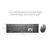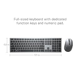 - Flexible multi-taskingSeamlessly connect up to three devices with this premium keyboard and mouse combo. The dual mode RF 2.4 GHz and Bluetooth 5.0 connectivity lets you effortlessly switch across devices with the connection-mode key or button on your keyboard and mouse.Navigate with precisionEasily maneuver across monitors of varying resolutions at home or in the office. Dell Peripheral Manager (DPM) software enables you to manage your input devices and adjust to your preferred preset DPIs at 1000, 1600, 2400 or 4000.Customize your wayGain instant access to your frequently used applications or functions with 12 programmable keys on your keyboard and 5 programmable mouse buttons. Power through your work with a full-sized keyboard that comes with a dedicated numeric pad, function keys, and programmed presets.Download the DPM software and easily pair your devices, adjust DPI on your mouse, check battery and connectivity status, program shortcuts and update to the latest firmware.Well-crafted designThe thoughtfully designed quiet keyboard is slim and stylish with a premium feel and titan gray finish. Experience all day comfort thanks to the sculpted mouse that fits perfectly in your hand. The adjustable tilt legs on your keyboard give you the flexibility to work in your ideal typing position.Durable and securePowered by one of the industry's leading battery lives at up to 36 monthsi, the Dell Premier Multi-Device Wireless Keyboard and Mouse combo has been rigorously tested to work seamlessly with your Dell system. The keyboard offers 128-bit AES (Advanced Encryption Standard) encryption protecting your data transmission across your PCs and devices, providing you with a secure connection while typing.