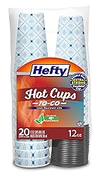 - Hefty Disposable Hot Cups with Lids are made stylish and strong, with a patented double wall design to keep heat in so that your beverages stay hotter, longer. These disposable 12 ounce coffee cups with lids are perfect to take your tea or coffee on the go, and they fit in cup holders and most single-serve coffee machines. The leak-resistant lid helps prevent spills and leaks, so you don't have to worry about a mess during your busy day. The elegant design makes these coffee cups an attractive and convenient choice; perfect for adding a touch of something special to your everyday. Start your morning Hefty strong with these paper coffee cups with lids.