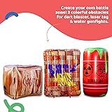 Create Your Own Battle Zone: Our inflatable battle set includes 3 colorful obstacles (box, wall, barrel) to take your party to the next level. Dart blaster play, laser tag, or water gunfights. Easy to Set Up & Durable: Inflate and deflate in minutes with any air pump. Heavy-duty construction stands up to the toughest battles. Adhesive patches included to repair any holes. Ideal Size for Kids: Obstacles are designed to protect kids from being shot. Ideal for use outdoors or indoors. Includes 1 barrel (35Wx20H), 1 container box (33Wx30H), and 1 wall (33Wx37H). Fun & Educational: Our inflatable battle set is the perfect toy to practice blaster skills and learn about teamwork, communication, and strategy. Fun for kids and adults alike! Windproof & Stable: Battle without worry! Inflatables are engineered to stay put. Fill the barrel and box bottoms with water and secure the wall to the ground with the included pegs.