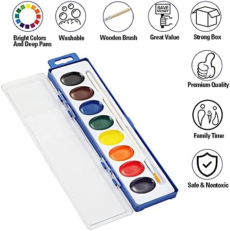 - RICH PIGMENT & EASY TO BLEND: Comes with 8 vibrant colors, each set is filled with plenty paints for one or more times use. High quality water paints guarantee rich pigment and natural diffusion in water. They have good transparency and high saturation, and are easy to blend. Watercolor paints are easy to dry, but they are reusable that you can add clean water to refresh them.