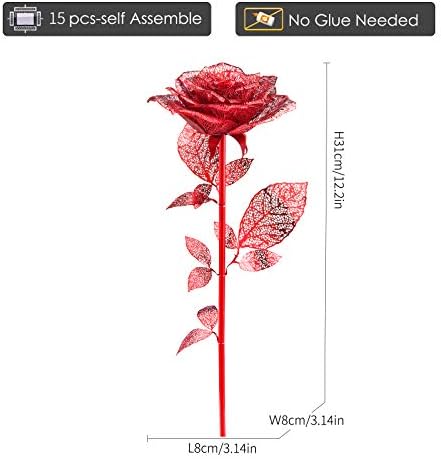 Piececool 3D Metal Puzzles Rose Flower Model Kits, Artificial Fake Flowers Metal Building Kit DIY 3D Puzzle for Adults, for Father Mothers Valentines Day, 15Pcs