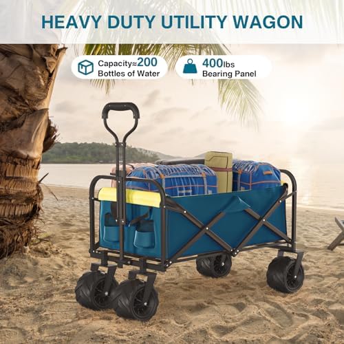 Carro plegable y desmontable, carro plegable de servicio pesado con capacidad de carga de 400 libras, carro de playa con grandes ruedas para arena, carro de utilidad portátil para exteriores