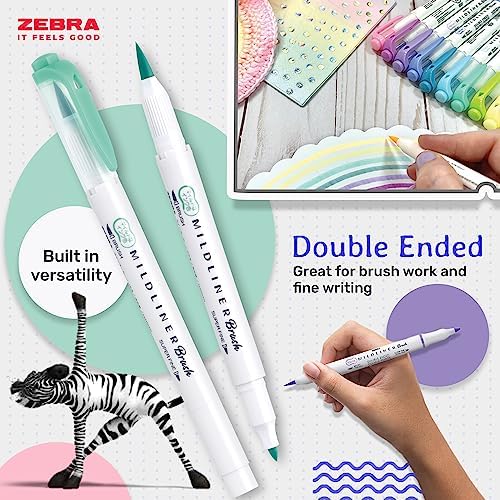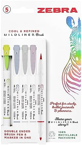 Zebra Pen MILDLINER Dual Tip Brush Pens, Felt Tip Pens For Adults, Bullet Tip & Brush Tip For Style & Convenience, Double Ended Mildliner Colouring Pens, Cool & Refined Colours 5pk