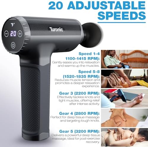• Powerful Deep Tissue Relief: Experience muscle relaxation with the Turonic GM5 massage gun, delivering intense percussion up to 3200 RPM across 20 speeds—perfect for after sports, targeting shoulder, back, leg, and foot soreness.