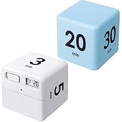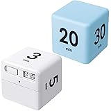 2 Pieces Cube Productivity Timer Flip Gravity Sensor Flip Countdown Countup Kids Workout Game Timer Management 1 3 5 10 Minutes and 15 20 30 60 Minutes for Work Learning Kitchen Cooking(White, Blue)