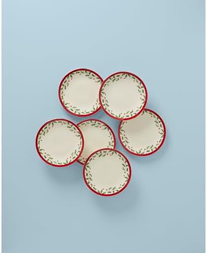 Set the table for the holidays] New to the Holiday collection is this 6-piece set of accent plates. Each one is decorated in the iconic holly motif and is finished with a bright red rim.At Lenox, we strive to make the daily moments in your life a bit more special. Inspired by heritage and designed for now, we bring a rich history of craftsmanship to modern day life. We’ve been a part of homes for over 130 years. Each time you buy Lenox, you are buying a versatile and timeless piece crafted with our century-long commitment to quality, artistry and beauty. Whether you’re gathering the family for dinner, grabbing a midnight snack for yourself in front of the TV or having friends over, Lenox is for real moments that last on products that are meant for living.