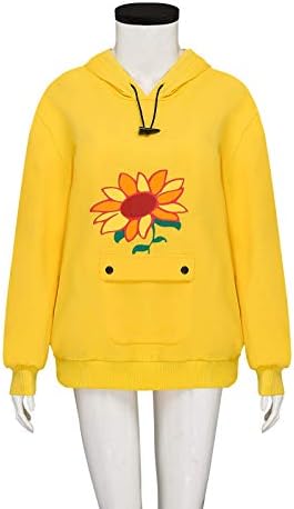 - 🌻 Características: corte holgado, sudadera con capucha, color amarillo, hermosa parte delantera en forma de girasol, puntos grandes La manga, decora un bonito lazo, cuello de sombrero, encantadoras camisetas casuales unisex