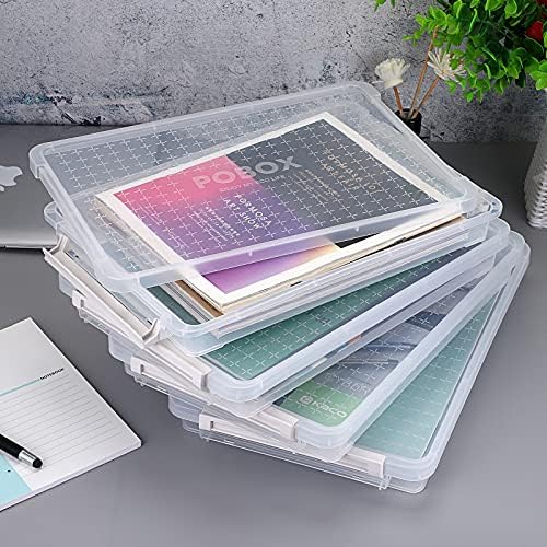 BTSKY 4 Pack A4 Plus Clear Plastic Stackable Storage Box Desk Paper Magazine Container with Buckle, Office Supplies Accessories File Protector Case Organizer, Portable Project Case Document Holders