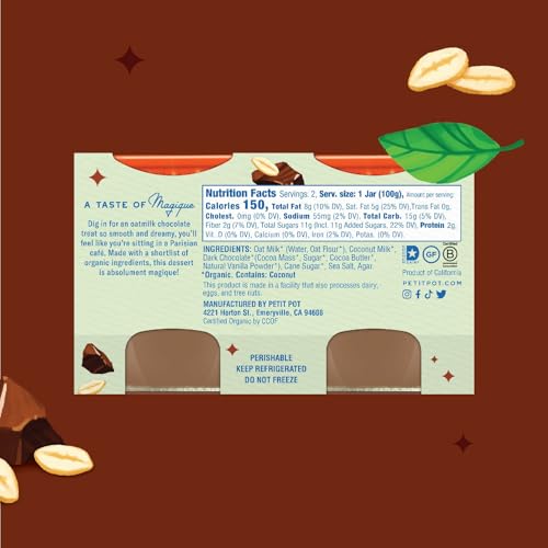 - NEW OATMILK DESSERT: Dairy-free lovers rejoice! Discover a world of creamy, decadent, plant based deliciousness with every spoonful of Petit Pot’s New Oatmilk Chocolate. Crafted from rich dark chocolate and blended with oatmilk for a perfectly creamy texture