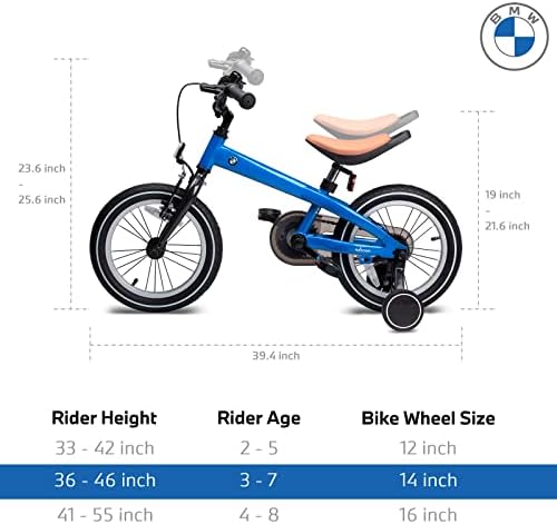 - THE RIGHT SPORT BICYCLE FOR YOUR KIDS - BMW kids' bike with 14 inches wheels is designed for children 36-46 inches tall
