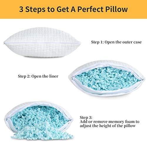- 【Immerse yourself in Peaceful Sleep】Imported. Our shredded memory foam pillow provides your neck, shoulder efficient support throughout the night; It works well for Side Sleeper, Back Sleeper and a Stomach Sleeper Pillow,CertiPUR-US Certified