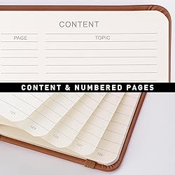 - RETTACY Lined Journal Notebook, 192 Numbered Pages, A5 Medium Size (5.7'' x 8.3''), for Men & Women, Journaling, Writing, Work & Office, Leather Hardcover, 100 GSM Thick Paper (Brown)