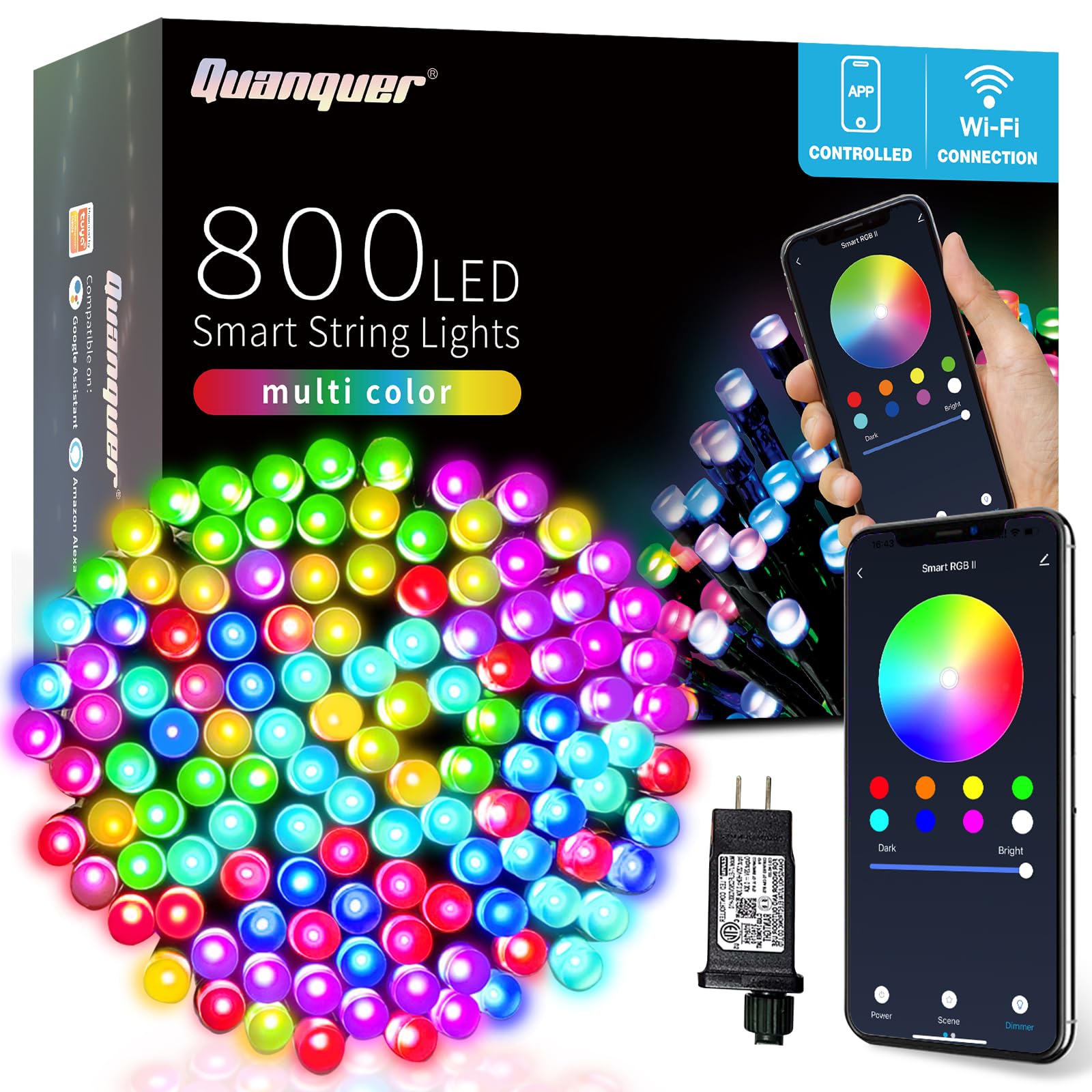 Quanquer Smart Christmas Lights Outdoor, 262FT 800 RGB LEDs ...