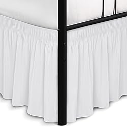 Biscaynebay Wrap Around Bed Skirts with Split Corners for Queen Beds 15" Drop, White Adjustable Elastic Dust Ruffles Easy Fit Wrinkle Resistant Silky Luxurious Fabric Machine Washable