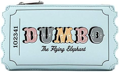 Loungefly Disney Dumbo Circus Ticket Flap Wallet Tu entrada para ver Dumbo el elefante volador está aquí con la billetera con solapa Dumbo Circus Ticket. Los suaves colores pastel y la forma del ticket de sorteo dan un toque divertido y divertido a cualquier atuendo de Disney. Esta cartera es el accesorio perfecto para los fanáticos de Disney que buscan tener cerca una de sus películas animadas favoritas y sus necesidades. Esta cartera es un producto con licencia oficial de Disney. La billetera Dumbo Circus Ticket Flap está hecha de cuero vegano (poliuretano). La cartera se cierra a presión, tiene un bolsillo con cremallera y características: detalles de apliques, estampados, grabados y bordados. Toma nota del diseño a juego de la tela del forro interior. Esta cartera es un producto con licencia oficial de Disney. Dimensiones de la cartera: 6.5 pulgadas de ancho x 4 pulgadas de alto (tenga en cuenta que el ancho se mide en la parte inferior de la cartera).