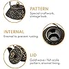 - Exquisite Design - Black cast iron kettle with gold traditional Japanese wave / fish scale pattern design makes VUDECO Japanese tea kettle steady and elegant. Classic vintage black and gold design enhances the authentic ancient Japanese culture and adds artistic feeling while brewing your tea for daily ritual or display as an ornament.