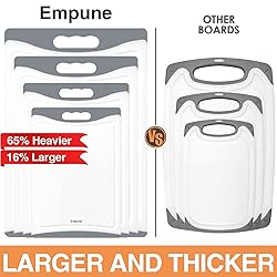 Extra Large Cutting Boards, Plastic Cutting Boards for Kitchen (Set of 4) Cutting Board Set Dishwasher Chopping Board with Juice Grooves Easy-Grip Handles, Grey, Empune