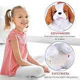 💓【Safe Materials and Excellent Design】 : strict requirements on the production process as a whole, all of materials used in toys are safe and environment-friendly, comfortable and soft, smooth without peculiar smell, toxic-free, the baby could play with relief. 💓【Great Fun】: Adorable dog walks, barks, stretchs and wags its tail like a real puppy, it will bark when you tap its head.Puppy can perform tricks and walk on carpets, hard wood, etc.! 💓【Easy to Operate】: Put 2 AA 1.5V batteries into the puppy's abdomen, turn on the switch, then the puppy will work.Measures 6.3" (H) x 7.4" (L) x 3.9" (W) 💓【Good Idea For Gift】: This faux pet makes a great Christmas, Easter, or birthday gift. Nearly every boy, girl, and toddler dreams of owning a pet at some point in their lives. But real pets come with real 💓【Perfect Customer Satisfaction】: If any problems, please email us first, we offer refund or replacement to you if the dog toy you received fails to work in 18 months