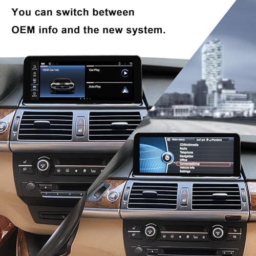 PEMP Linux Vertical Screen E70 E71 CIC Wired and Wireless CarPlay Retrofit Android Auto, 1920 x 720 Display Mirror Link Car Radio Bluetooth Video Player Screen for BMW X5 X6 (2010-2012)
